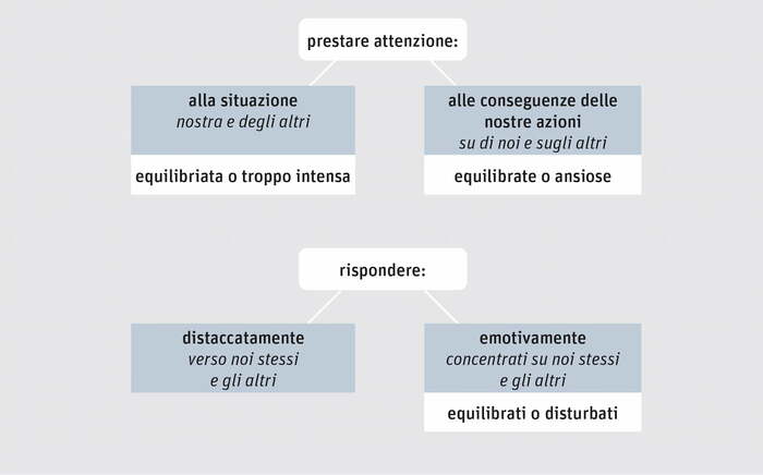 - Rispondiamo a ciò che notiamo in due modi: in modo distaccato o con eccessiva emotività. Per quanto riguarda gli altri, supponiamo di notare qualcuno che cerca di sorpassarci in autostrada. Potremmo reagire con sobrietà e cambiare corsia, oppure potremmo infuriarci e pensare a parolacce. Per quanto riguarda noi stessi, potremmo reagire con calma allo smarrimento delle chiavi e cercarle sistematicamente, oppure potremmo farci prendere dal panico.